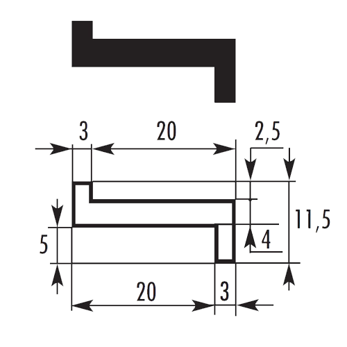 Polizene geleiding in rol ZB 20 X 5,5 zwart (op rol) P.004 A