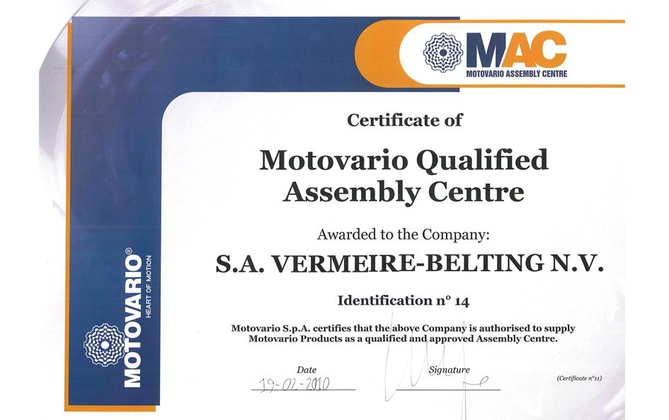We are an assembly centre certified by Motovario (MAC) which allows us to deliver the whole range from stock: in 2018, this certification will be extended to ATEX models.