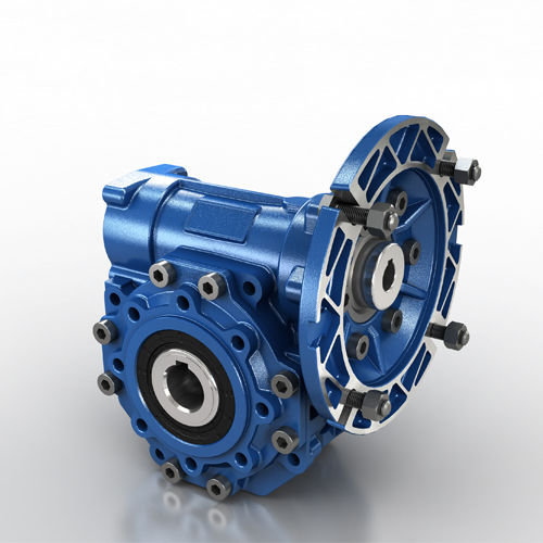 NMRV and NMRV POWER worm gear reducers currently represent the most advanced solution to market requirements in terms of efficiency and flexibility. The new NMRV Power series, also available as compact integral helical/worm option, has been designed with a view to modularity: low number of basic models can be applied to a wide range of power ratings guaranteeing top performance and reduction ratios from 5 to 1000. NMRV – Sizes: 025-030-040-050-130-150 NMRVpower – Sizes: 063-075-090-110 Available versions: fitted for motor coupling, with input shaft, with torque limiter Power up to 18,5 kW Cases up to 110 in die-cast aluminium alloy and over 130 in G200 grey cast iron Ratios between 5 and 100 Max torque 1.550 Nm and admissible radial loads max 18.000 N Aluminium units are supplied complete with synthetic oil and allow for universal mounting positions, with no need to modify lubricant quantity Size 030 and over are painted with RAL 5010 blue epoxy-polyester powder Available with pre-stage unit: HA31 for NMRV040/NMRV050, HW 030/040 for NMRV-P Series Worm gear reducers are available with diffferent combinations: NMRV+NMRV, NMRVpower+NMRV, NRV+NMRV, NRVpower+NMRV, HA31+NMRV, HW/NMRVpower, IHW/NMRVpower Options: protection cover, torque arm, output flange, output shaft kit, torque limiter, viton oil seals, low/high temperature and food grade oil, filling/drain/breather/level plug, reinforced output